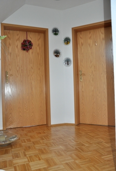 Die Fußböden sind freundlich hell gefliest, bzw. im Obergeschoss mit Echtholzparkett belegt. Die Sprossenfenster verleihen dem gemütlichen Heim einen ganz besonderen Schick.