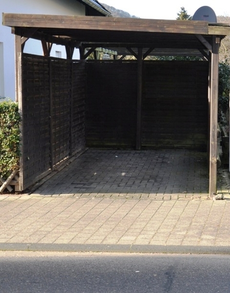 Zu der Wohnung gehört ein Carport, der sich neben dem Haus befindet.